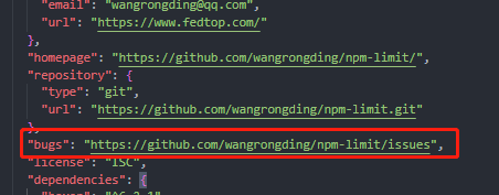 👆 它是根据项目中的 package.json 文件中,设置的bugs属性,来打开对应的 url。